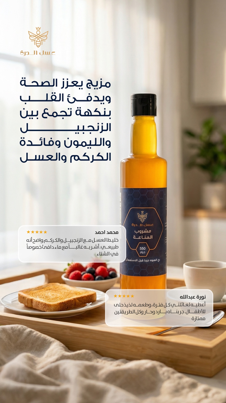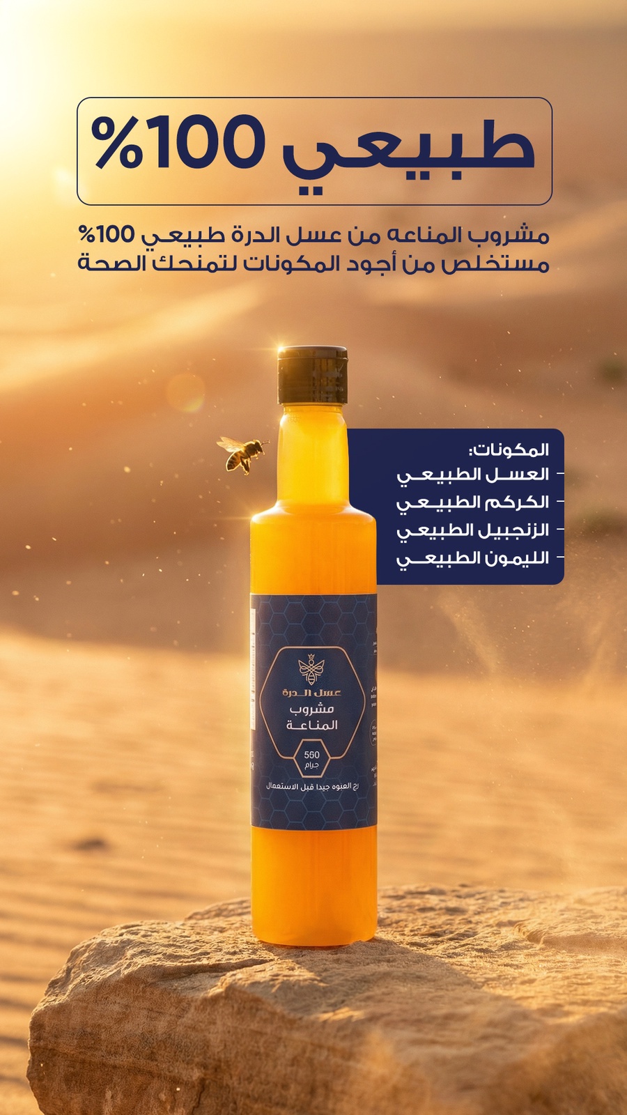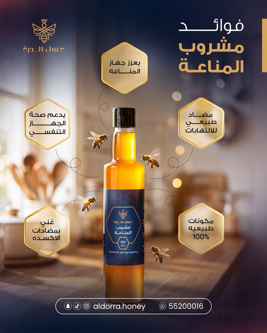 مشروب المناعة من عسل الدرة يقدم لك تركيبة طبيعية 100% محضّرة من مكونات مختارة بعناية لتمنحك طعم متوازن وفائدة غذائية عالية.